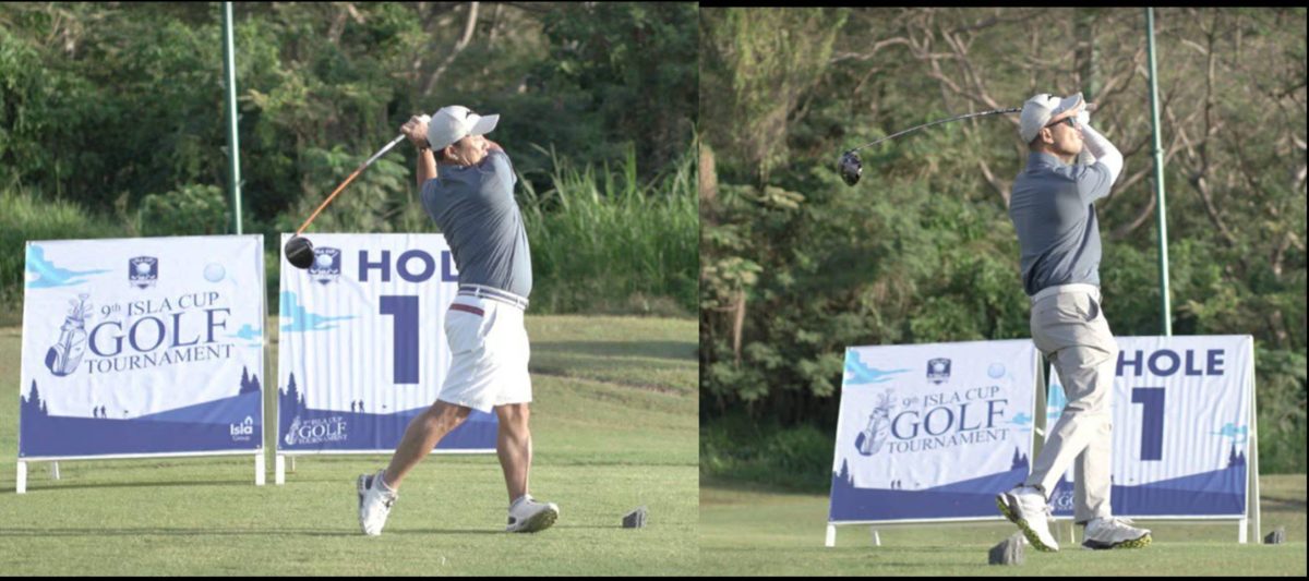 LEADING THE WAY AT THE 9TH ISLA CUP. Isla Group Corporation Chief Executive Officer Tomoaki Asai and Chief Operating Officer Banjo Castillo lead the ceremonial tee off for the 9th Isla Cup Golf Tournament.